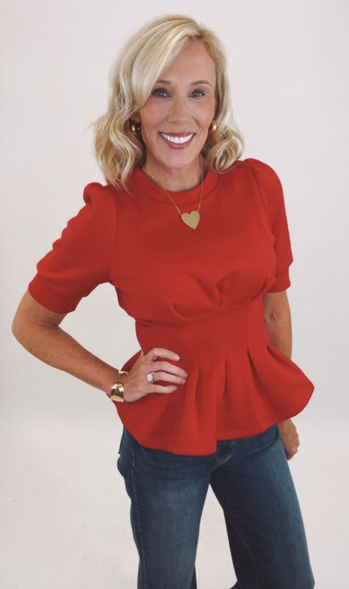 A sweatshirt—but make it tailored. The Tuck & Tailor Top takes cozy comfort to polished new heights with its structured seaming, puffed short sleeves, and a softly flared hem that cinches the waist just right. It’s a chic little number that works hard while keeping you comfy.