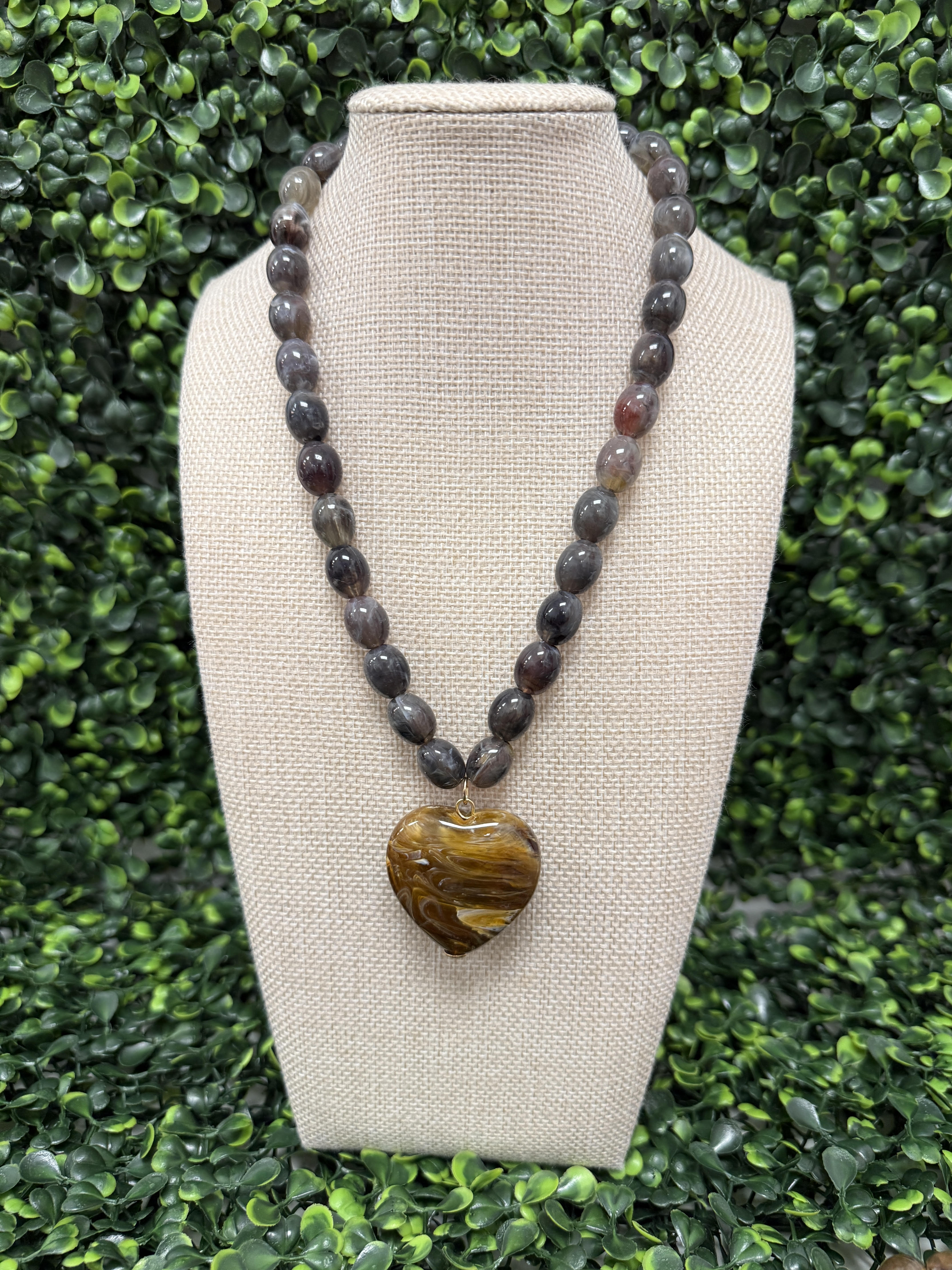 Classic elegance meets modern charm in the Verona Heart Necklace. Each piece features smooth, polished stone beads and a marbled heart pendant that catches the light with every move. Whether you choose the rich caramel swirl or the deep crimson hue, this necklace evokes sophistication with a touch of love.