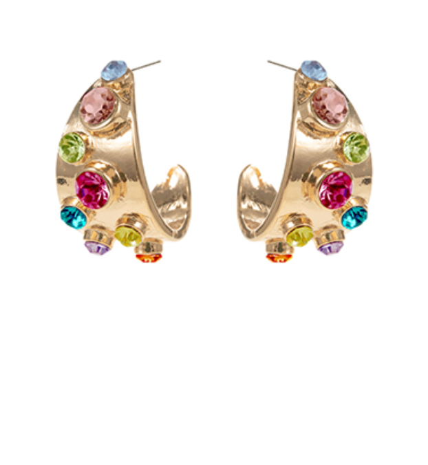Small but mighty—these 1" gold hoops bring the drama with bold, faceted rainbow stones that pop against the polished metal. Equal parts playful and polished, they’re the perfect accent for adding a spark of personality to any look.