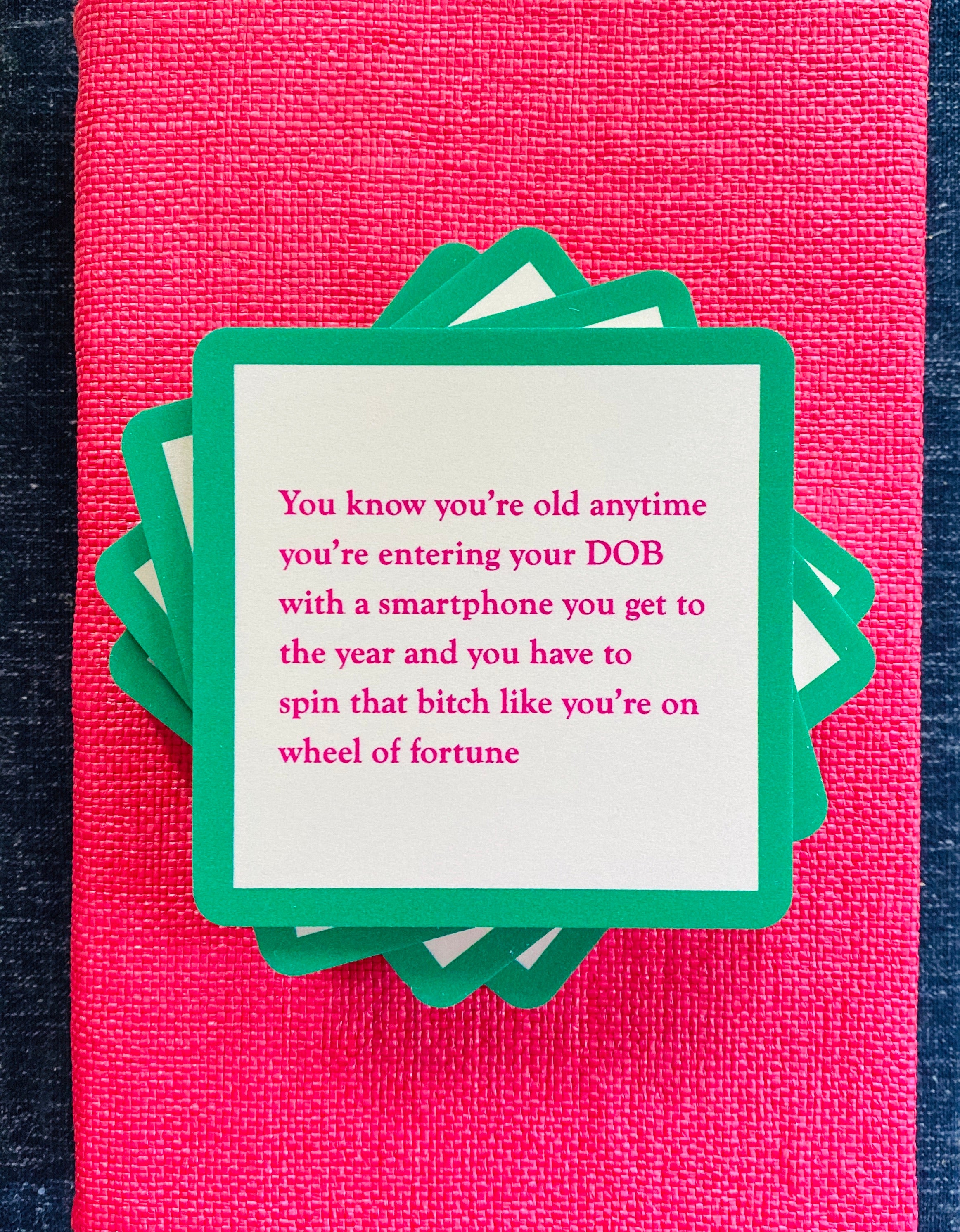BUY 4 or more of the same or assorted coasters & they come with a cute rubber band! AMAZING hostess gift or funny gift for any & every day!!!