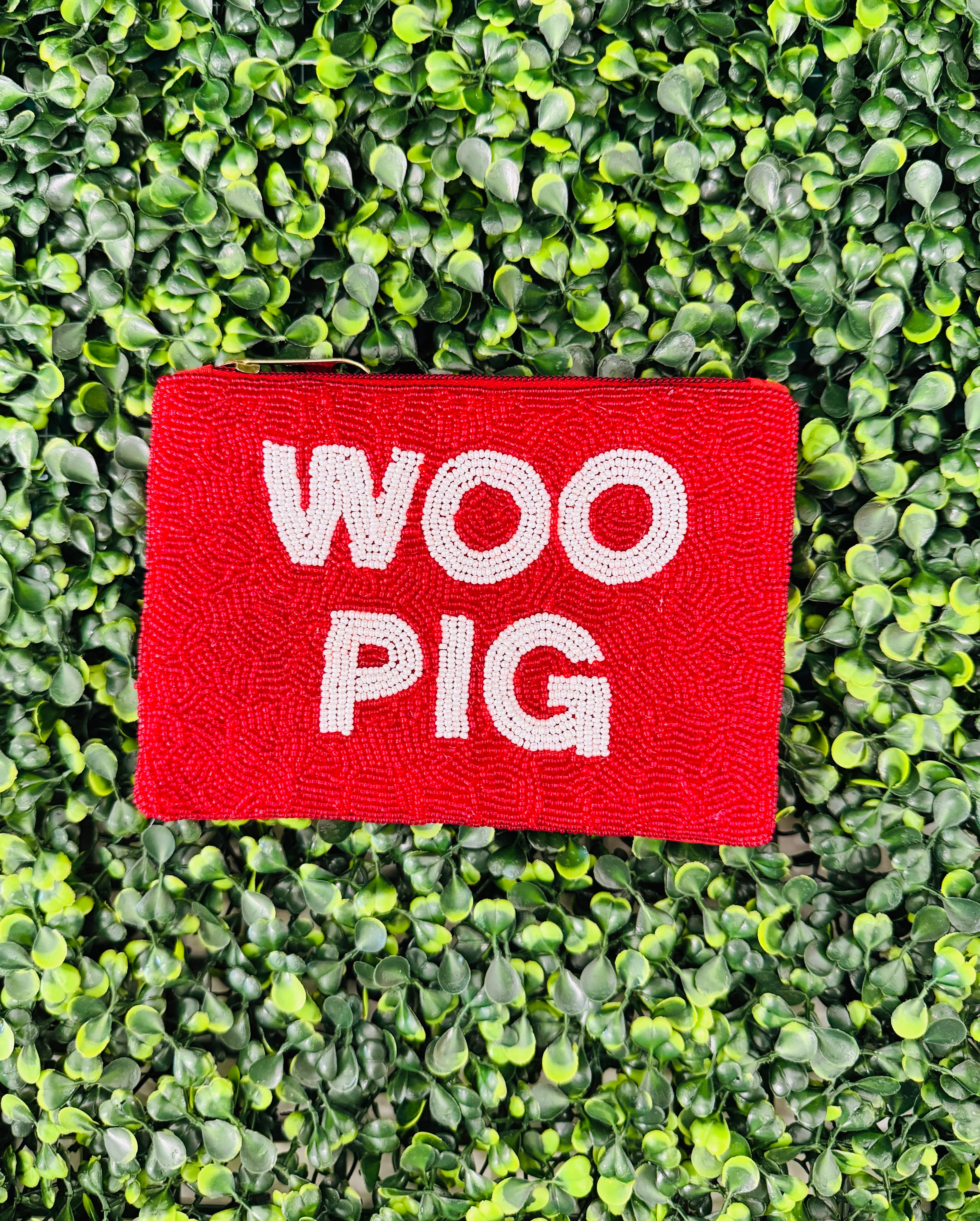 Call the Hogs in style with this spirited “Woo Pig” beaded pouch! Covered in vibrant red seed beads with bold white lettering, this 4.25” x 6” zippered pouch is the perfect accessory for game day glam, tailgate essentials, or tossing in your clear stadium bag. Fully beaded on the front and solid red fabric on the back, it’s a fierce nod to Razorback pride.