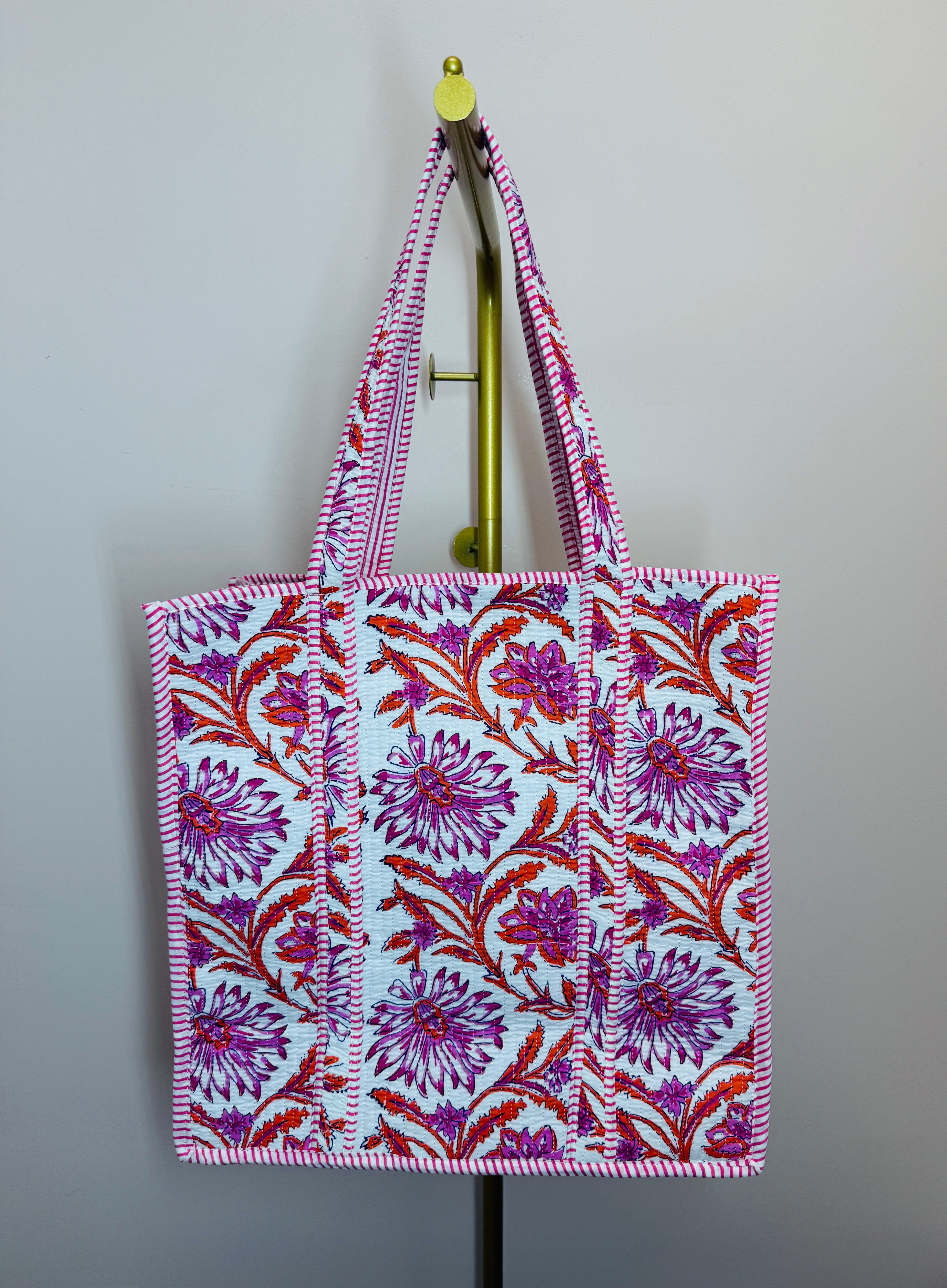 Meet your new everyday carry-all. This XL quilted tote bag is thoughtfully crafted to be as functional as it is fun. Soft, lightweight, and easy to grab and go, it’s designed to hold everything—from daily essentials to extra just-in-case items. The quilted cotton adds a cozy, charming touch, while the roomy interior and handy square pocket keep you effortlessly organized. Whether you’re running errands, heading to work, or packing for a busy day, this tote is ready to come along for the ride.