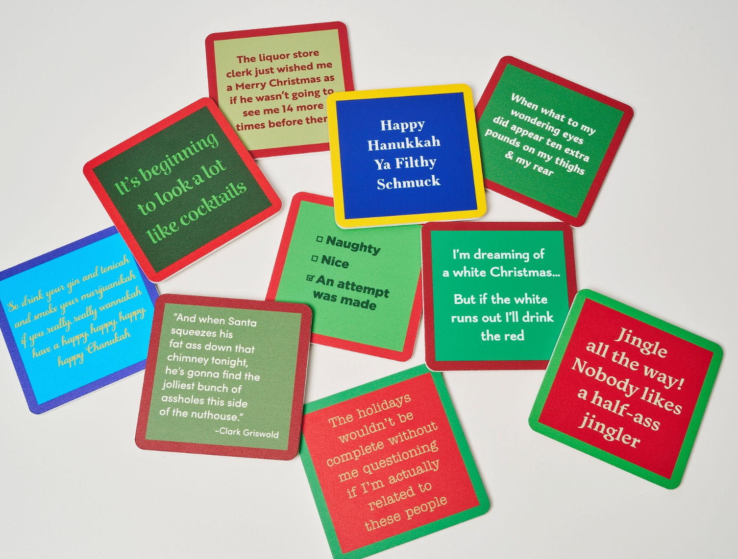 At Drinks on Me, we create laugh-out-loud moments — because your drink deserves a sense of humor. Add a pop of funny to your customers' coffee tables, kitchen counters, & bar carts with these witty coasters. They’re bold & hilarious! Perfect for coffee, tea, cocktails, beer, wine or brunches, our coasters protect surfaces while adding kitsch charm shoppers will love. Ideal for hostess gifts, housewarmings, birthdays, holidays, or funny party favors, they add a playful touch & humor to any home.