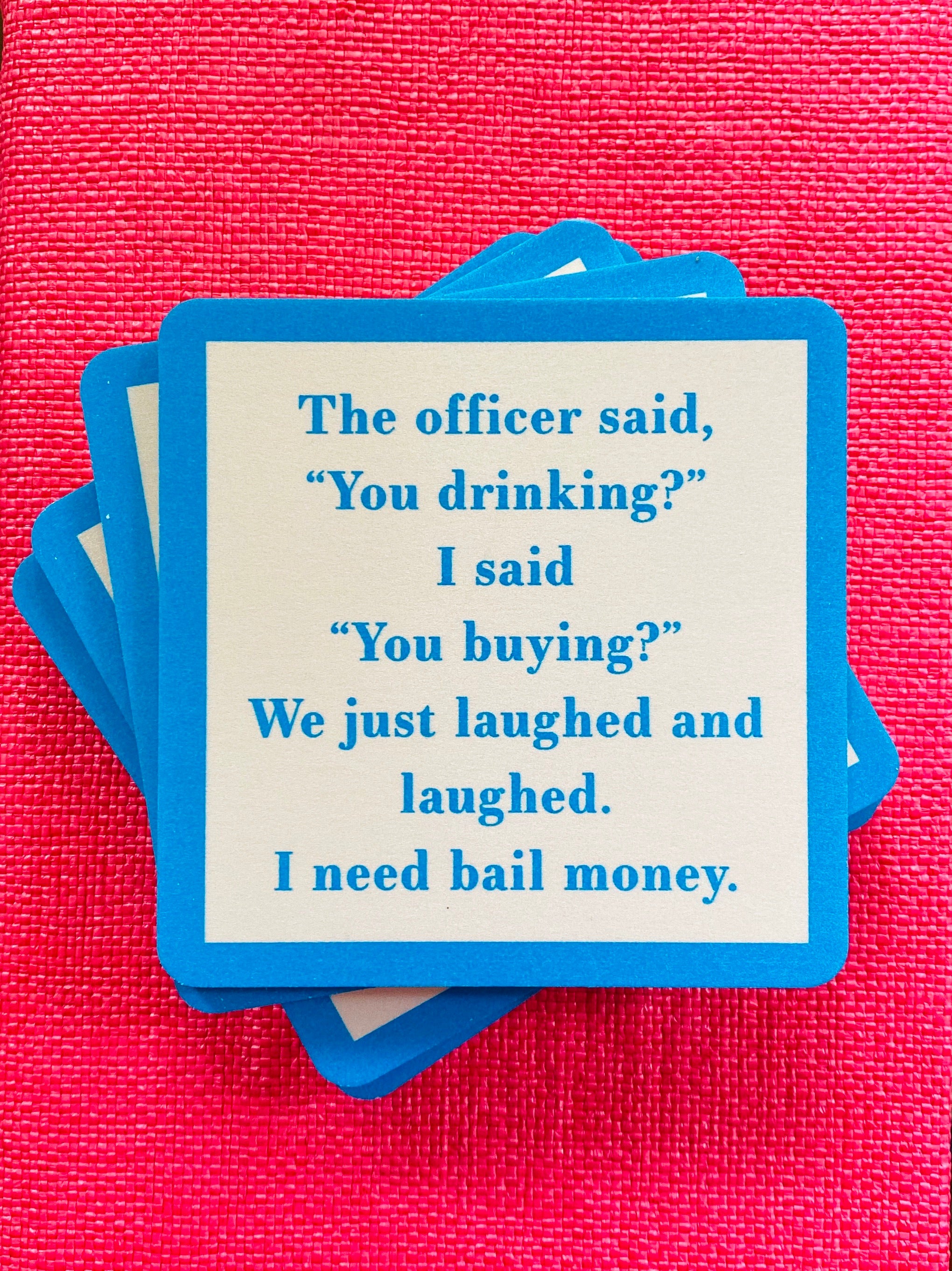 BUY 4 or more of the same or assorted coasters & they come with a cute rubber band! AMAZING hostess gift or funny gift for any & every day!!!